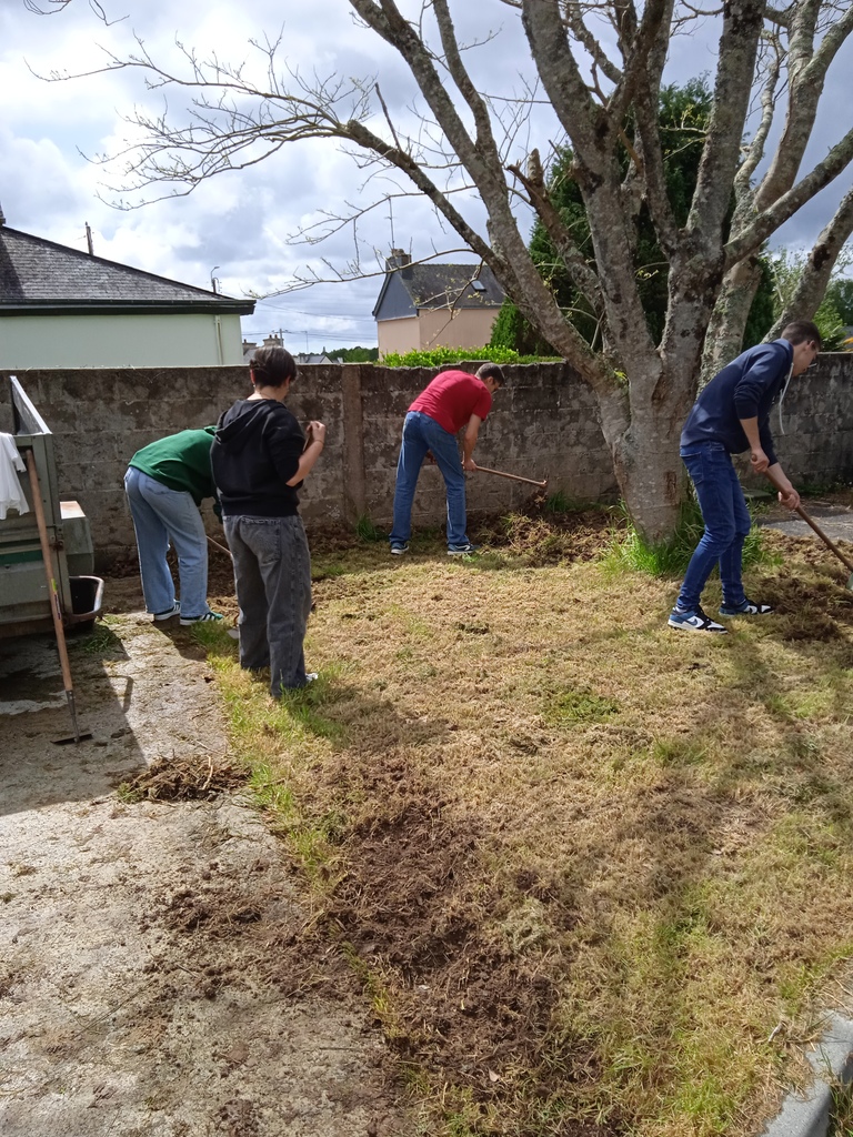 Vendredi 17/05/2024, les élèves ayant décidé de poursuivre dans le même état d’esprit, les projets de construction de nouveaux nichoirs et l’installation d’une prairie fleurie ont vu le jour. Deux groupes d’élèves se sont constitués et chacun s’est attelé à la tâche choisie : scier et assembler les morceaux de bois suivant un plan bien particulier ou préparer le sol de la future jachère fleurie. Les éco-délégué(e)s ont été très efficaces et investi(e)s : 4 nichoirs construits, prêts à être installés dans les arbres, et les fleurs semées après avoir travaillé le terrain pour favoriser la germination des graines. Des élèves mettront ces nichoirs en place très bientôt avec M. Lebour, agent d’entretien des espaces verts du lycée.